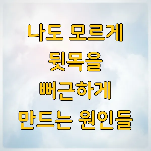 혹시 뒷목이 뻐근하고 불편하신가요? 일상생활에서 흔히 겪는 뒷목 통증의 원인과 이를 효과적으로 해결할 수 있는 구체적인 방법들을 쉽고 재미있게 알려드릴게요. 더 이상 통증으로 고민하지 마시고, 시원하게 풀어보세요!